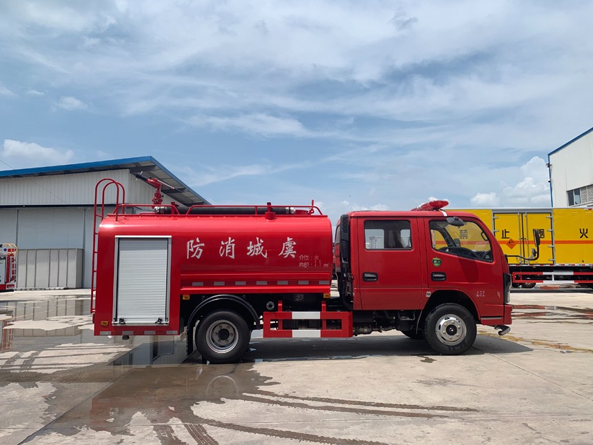 東風雙排森林消防車采用東風EQ1075SJ3CDF底盤改裝,原裝雙排駕駛室, 全柴Q23-132E60 發動機,132馬力,罐體容積3.5立方米,配備CB10/20消防泵,20消防炮。