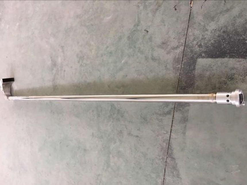 泡沫鉤管是一種移動(dòng)式泡沫滅火設(shè)備,用以下生產(chǎn)和噴射空氣泡沫,撲救沒(méi)有固定泡沫滅火裝置的地下,半地下和小型油罐的油類和汽油火災(zāi)。其組成是由鉤管和空氣泡沫產(chǎn)生器兩部分構(gòu)成。鉤管上部有彎形噴管,用以鉤住著火的油罐上,并向罐內(nèi)噴射泡沫,而下端為空氣泡沫產(chǎn)生器,裝有65毫米管牙接扣,用水帶連接,輸送空氣泡沫混合液。當(dāng)泡沫混合液混合經(jīng)過(guò)多孔錐管逐漸擴(kuò)散,形成良好的空氣泡沫,從彎形噴管噴出,撲救火災(zāi),操作簡(jiǎn)單方便。