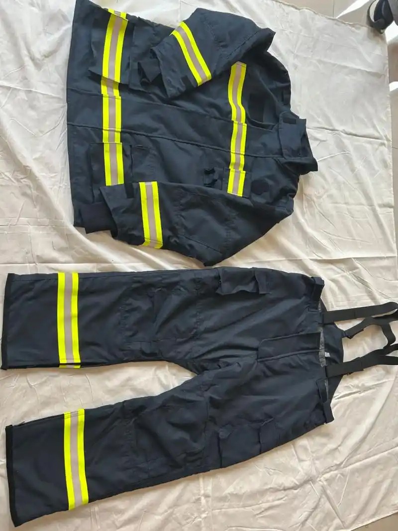3)反光標識帶。上衣在胸部、下擺、袖口各設1條360度環形反光標識帶,褲子在小腿部各設1條360度環形反光標志帶。反光標志帶寬度為50.8mm(2英寸),為黃銀黃雙色阻燃反光帶,確保消防員的可見度和工作安全。